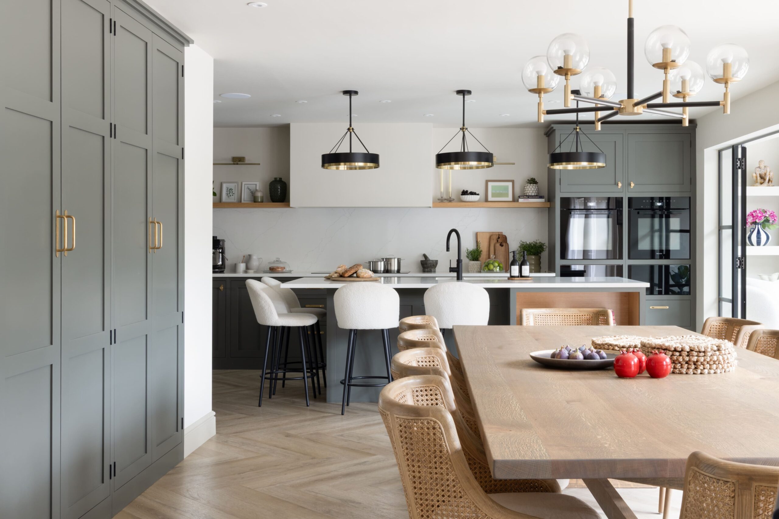 This family home in Gustard Wood, combines natural materials, considered colour and timeless detailing across the kitchen, pantry, utility and boot room.