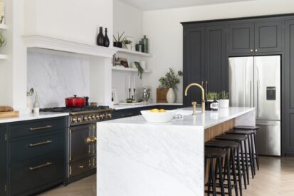 A traditional kitchen that blends clean contemporary lines and forward-thinking functionality.