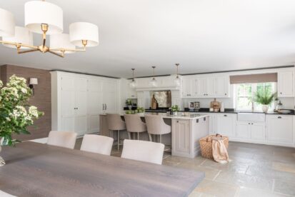An elegant yet luxurious family kitchen brimming with sleek character and charm.