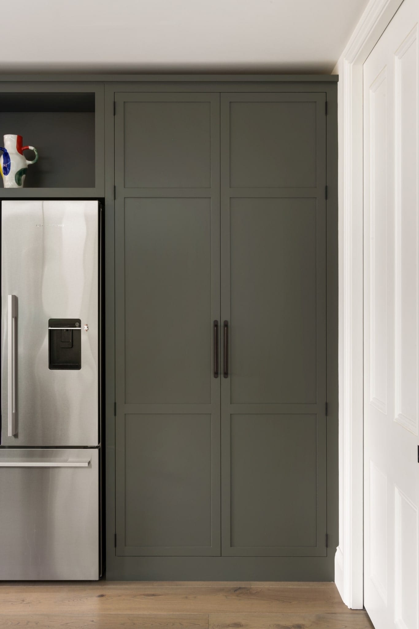 Our design team has crafted a space that is as organised as it is beautiful with subtle touches such as thin shaker details and glass-fronted cabinets adding a timeless elegance to the overall design.